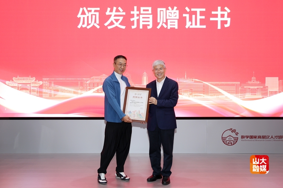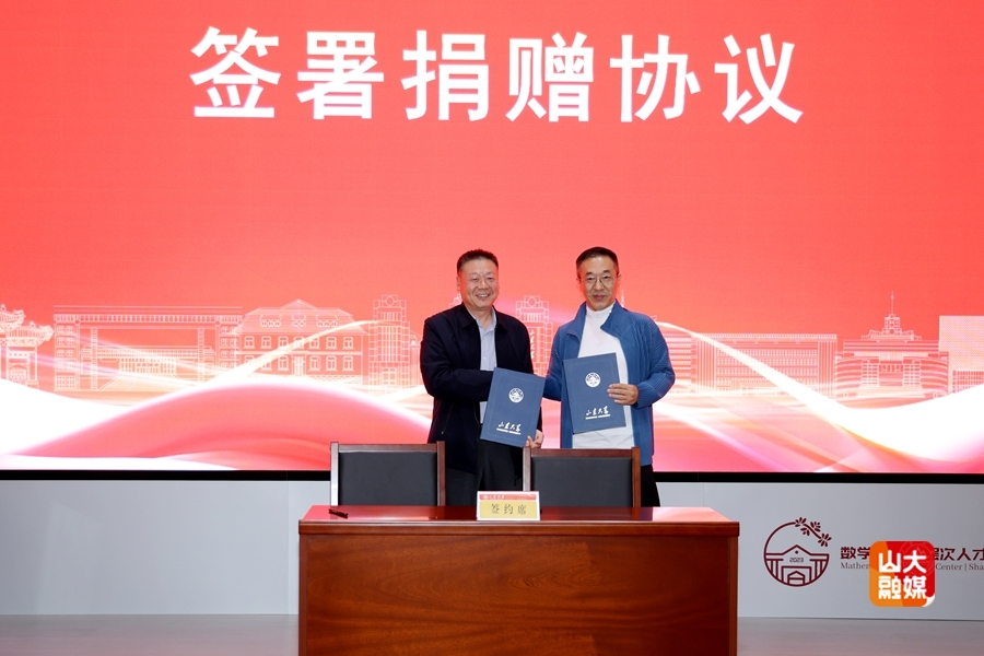 李术才向情系母校发展的焦震校友表示衷心感谢。他表示,山东大学数学学科是国内外具有重要影响力的科学研究中心和人才培养中心,几代学人薪火相承、踔厉奋进,为国家培养了大批专业基础扎实、创新能力卓越的优秀人才。学校将以焦震校友捐赠设立的“山东大学数学高层次人才培养发展基金”为契机,进一步紧密对接国家重大战略需求,打造全球竞争力的人才培养体系,以深化学科交叉和产教融合推进前沿领域创新突破,推动数学学科向更高质量发展,为加快建设中国特色世界一流大学,全面服务教育强国建设作出更大贡献。